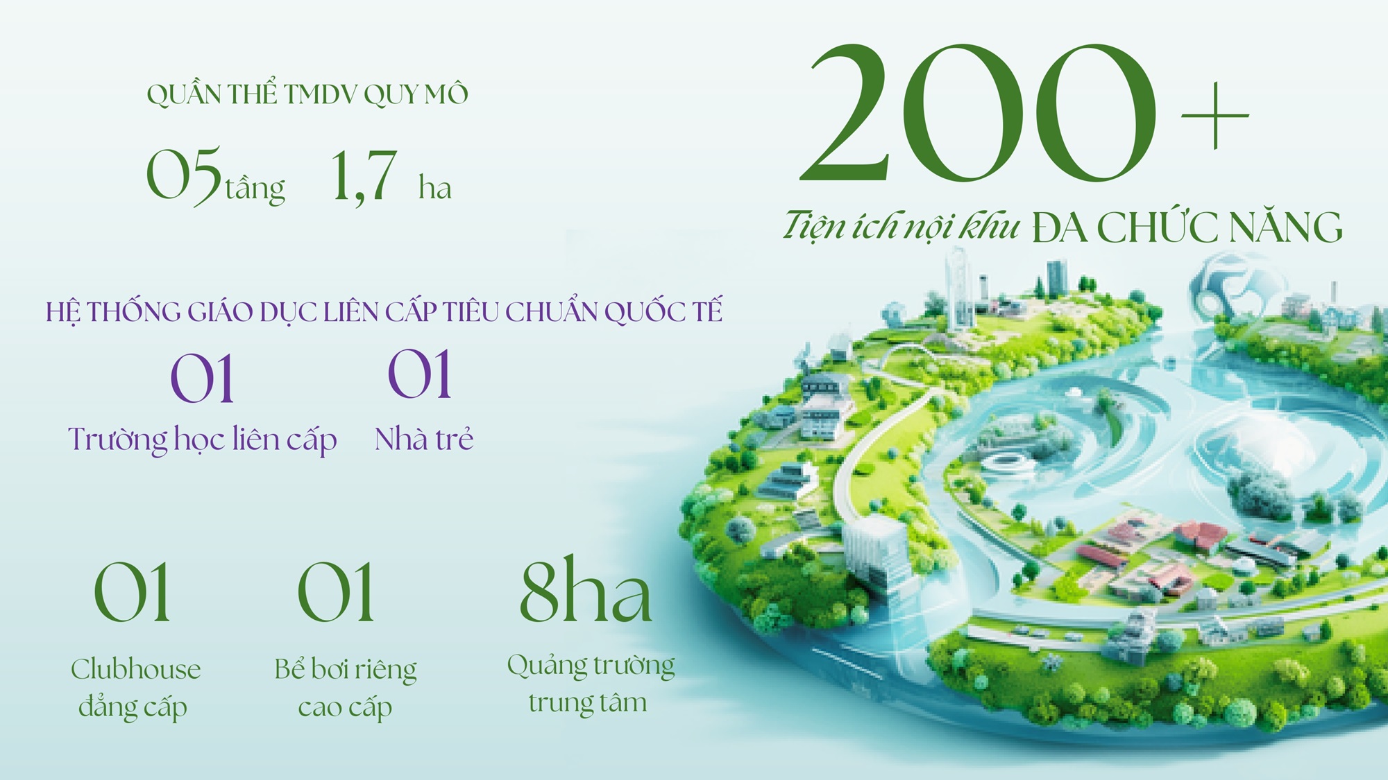 ♦ Mật độ xây dựng: 21% (Tỷ lệ cây xanh mặt nước, công trình công cộng, chức năng, dịch vụ chiếm 79%)